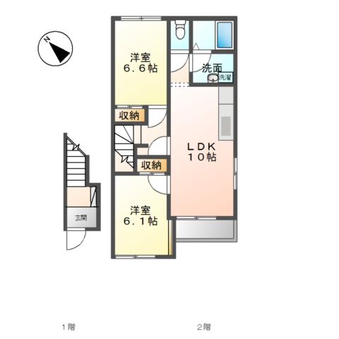 | 間取り詳細 | LDK 10畳 、 洋室 6.6畳 、 洋室 6.1畳 |