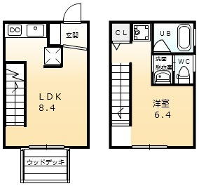 | 間取り詳細 | LDK 8.4畳 、 洋室 6.4畳 |