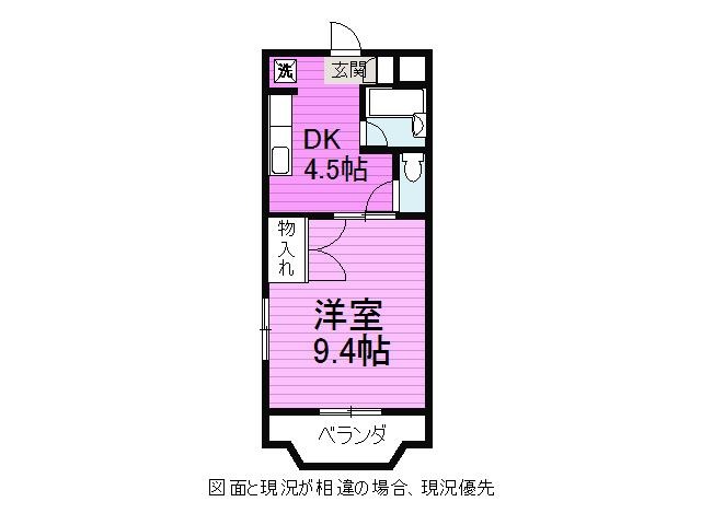 | 間取り詳細 | DK 4.5畳 、 洋室 9.4畳 |