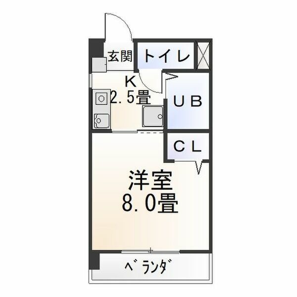 | 間取り詳細 | K 2.5畳 、 洋室 8畳 |