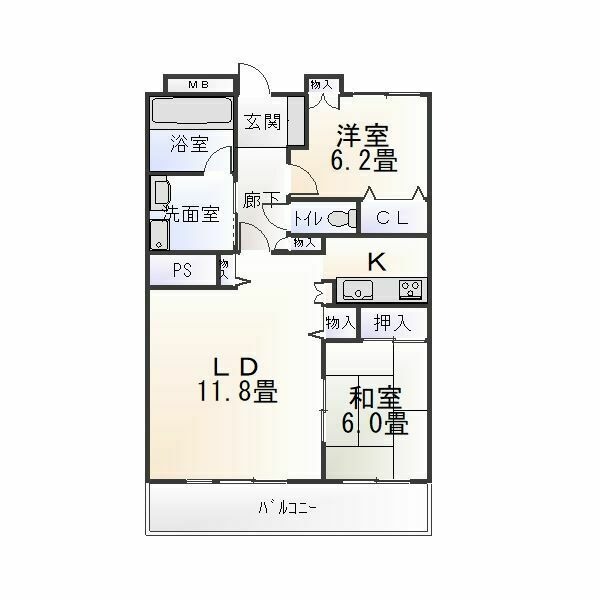 | 間取り詳細 | LDK 11.8畳 、 洋室 6.2畳 、 和室 6畳 |