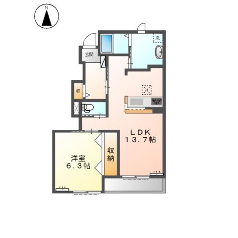 | 間取り詳細 | LDK 13.7畳 、 洋室 6.3畳 |