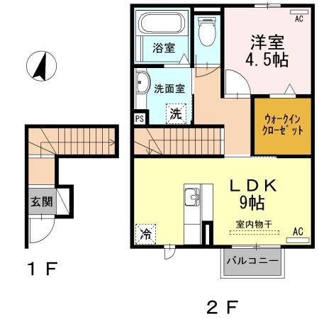 | 間取り詳細 | LDK 9畳 、 洋室 4.5畳 |
