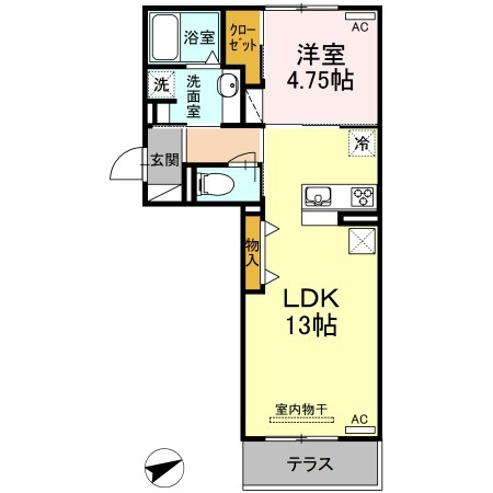 | 間取り詳細 | LDK 13畳 、 洋室 4.75畳 |
