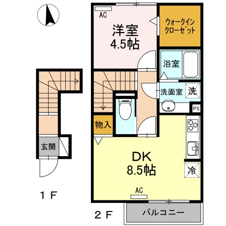 | 間取り詳細 | LDK 8.5畳 、 洋室 4.5畳 |