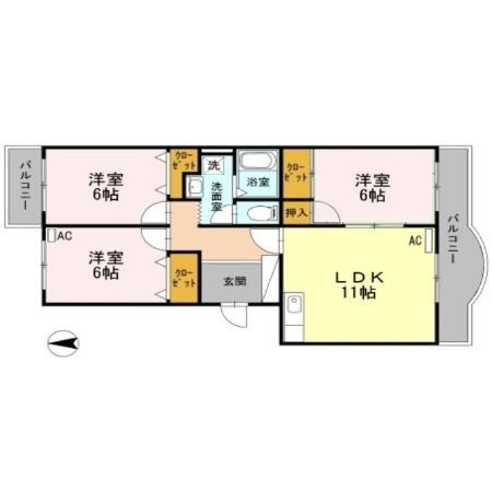 | 間取り詳細 | LDK 11畳 、 洋室 6畳 、 洋室 6畳 、 洋室 6畳 |