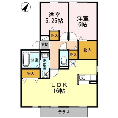 | 間取り詳細 | LDK 16畳 、 洋室 6畳 、 洋室 5.25畳 |