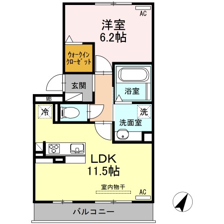 | 間取り詳細 | LDK 11.5畳 、 洋室 6.2畳 |