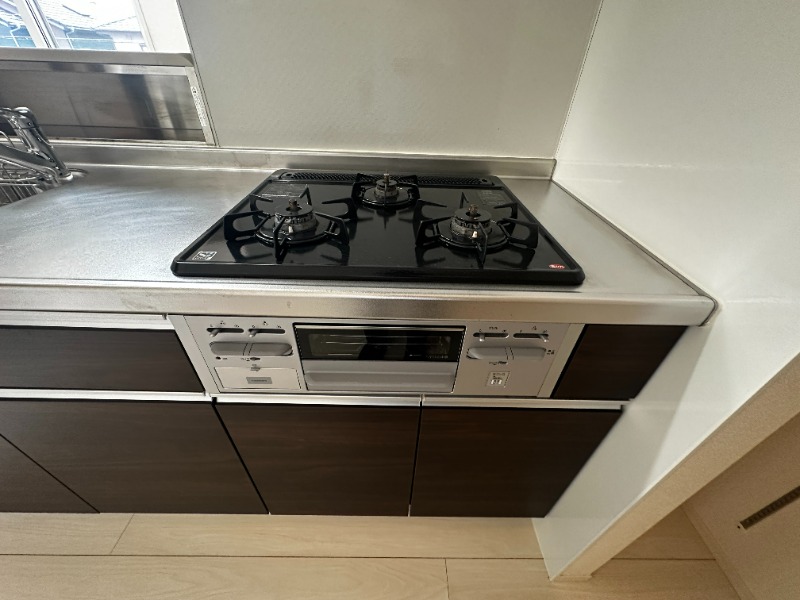 | 設備 | ガス(プロパン)、インターホン(TVモニター付き)、防犯カメラ、カードキー、オートロック、火災報知機、駐輪場、日当り良好、フローリング、照明器具、全室照明付、ベランダ・バルコニー、ウォークインクローゼット、ウォークインクローゼット数(1)、下駄箱、バス・トイレ別(別室)、シャワー、追い焚き、浴室乾燥機、脱衣所、給湯、浴室1坪以上、ウォシュレット、ウォームレット、洗面台、洗面所独立、シャンプードレッサー、洗濯機置き場(室内)、コンロ設置済、コンロ口数(3)、コンロ種類(プロパン)、グリル、システムキッチン、カウンターキッチン、対面キッチン、エアコン、エアコン台数(2)、CATV、インターネット使用料無料 | ||