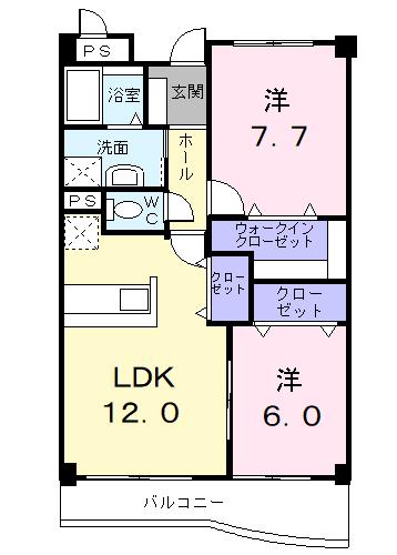| 間取り詳細 | 洋室 7.7畳 、 洋室 6畳 、 LDK 12畳 |