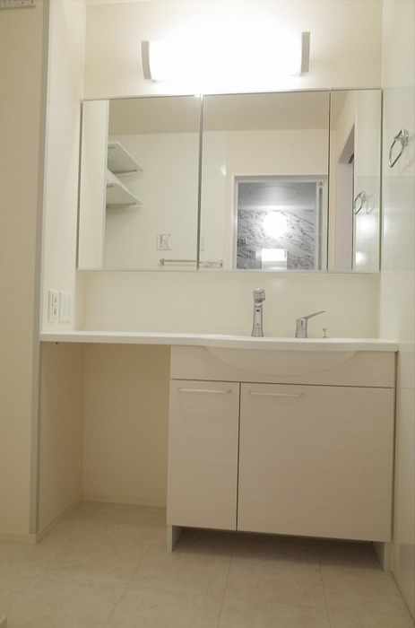| 設備 | ガス(都市ガス)、インターホン(TVモニター付き)、カードキー、火災報知機、宅配ボックス、駐輪場、フローリング、全居室フローリング、照明器具、全室照明付、ベランダ・バルコニー、ウォークインクローゼット、ウォークインクローゼット数(1)、下駄箱、バス・トイレ別(別室)、シャワー、追い焚き、浴室乾燥機、脱衣所、給湯、ウォシュレット、ウォームレット、洗面台、洗面所独立、シャンプードレッサー、洗濯機置き場(室内)、コンロ設置済、コンロ種類(都市ガス)、システムキッチン、カウンターキッチン、対面キッチン、エアコン、CATV、インターネット使用料無料 | ||