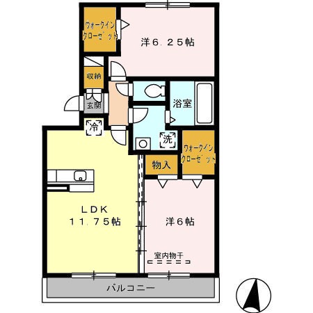 | 間取り詳細 | LDK 11.75畳 、 洋室 6畳 、 洋室 6.25畳 |