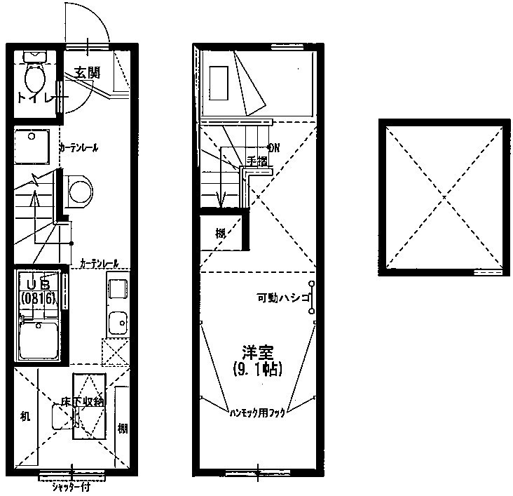 | 設備 | ガス(プロパン)、インターホン(TVモニター付き)、駐輪場、フローリング、メゾネット、ロフト、収納スペース、床下収納、下駄箱、バス・トイレ別(別室)、シャワー、給湯、洗面台、洗面所独立、洗濯機置き場(室内)、コンロ設置済 | ||