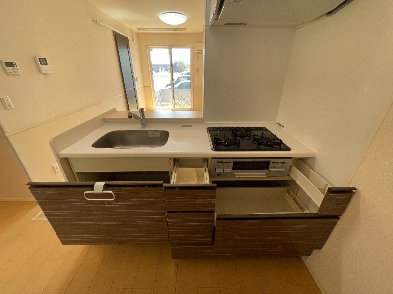 | 設備 | ガス(プロパン)、インターホン(TVモニター付き)、カードキー、火災報知機、駐輪場、角部屋、フローリング、照明器具、全室照明付、ベランダ・バルコニー、シャッター雨戸(手動)、収納スペース、ウォークインクローゼット、床下収納、下駄箱、バス・トイレ別(別室)、シャワー、追い焚き、脱衣所、給湯、ウォシュレット、ウォームレット、洗面台、洗面所独立、シャンプードレッサー、洗濯機置き場(室内)、コンロ設置済、コンロ種類(プロパン)、システムキッチン、カウンターキッチン、対面キッチン、エアコン、CATV、インターネット使用料無料 | ||