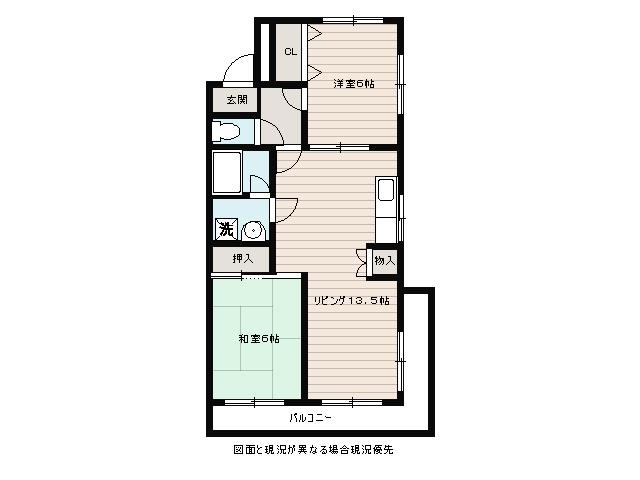 | 間取り詳細 | LDK 13.5畳 、 洋室 6畳 、 和室 6畳 |