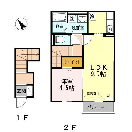 | 間取り詳細 | LDK 9.7畳 、 洋室 4.5畳 |