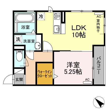 | 間取り詳細 | LDK 10畳 、 洋室 5.25畳 |