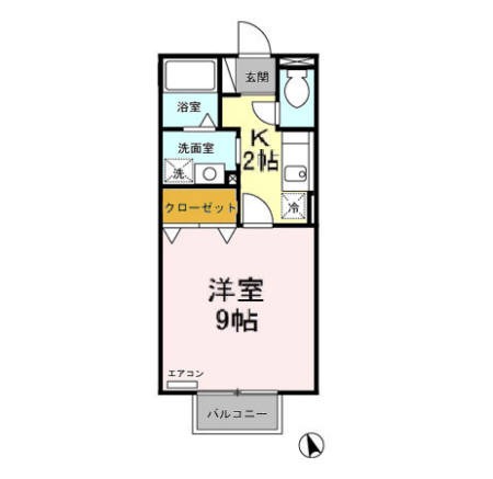 | 間取り詳細 | K 2畳 、 洋室 9畳 |