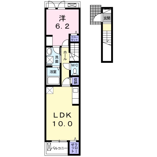| 間取り詳細 | 洋室 6.2畳 、 LDK 10畳 |