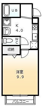 | 間取り詳細 | K 4畳 、 洋室 9.9畳 |
