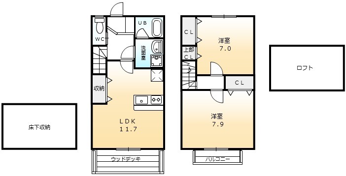 | 間取り詳細 | LDK 11.7畳 、 洋室 7畳 、 洋室 7.9畳 |