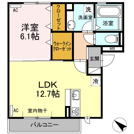 | 間取り詳細 | LDK 12.7畳 、 洋室 6.1畳 |