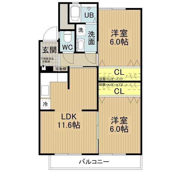 | 間取り詳細 | LDK 11.6畳 、 洋室 6畳 、 洋室 6畳 |