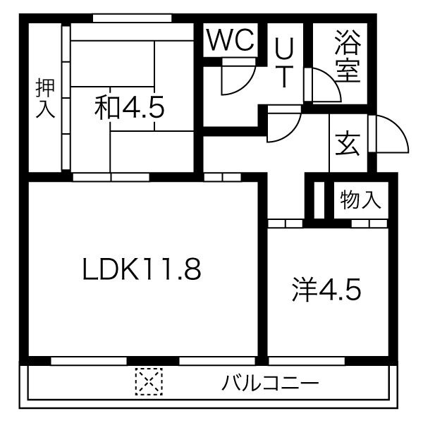 | 間取り詳細 | LDK 11.8畳 、 洋室 4.5畳 、 和室 4.5畳 |
