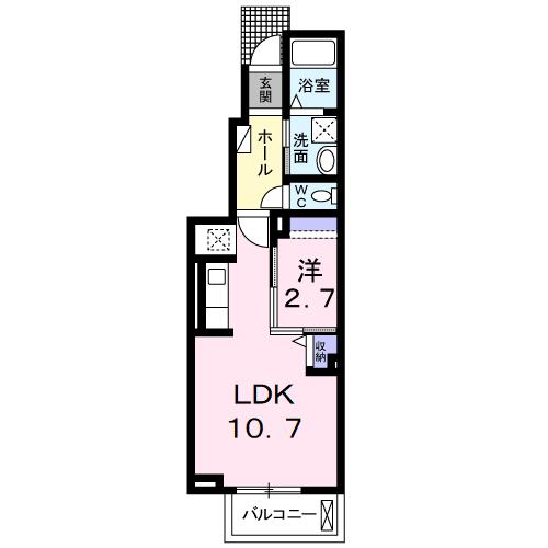 | 間取り詳細 | 洋室 2.7畳 、 LDK 10.7畳 |