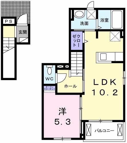 | 間取り詳細 | 洋室 5.3畳 、 LDK 10.2畳 |