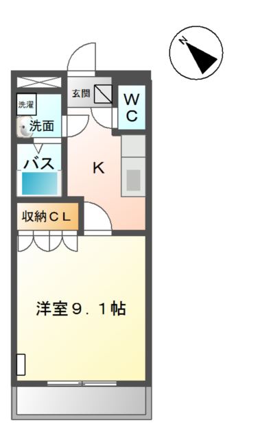 | 間取り詳細 | K 3畳 、 洋室 9.1畳 |