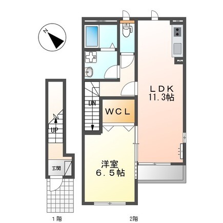 | 間取り詳細 | LDK 11.3畳 、 洋室 6.5畳 |