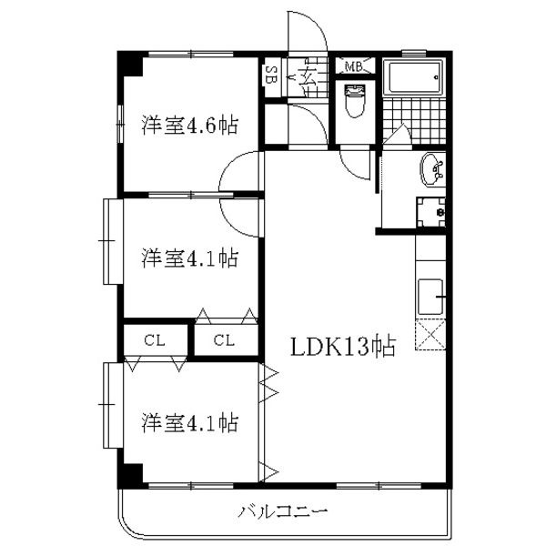 | 間取り詳細 | LDK 13畳 、 洋室 4.1畳 、 洋室 4.1畳 、 洋室 4.6畳 |