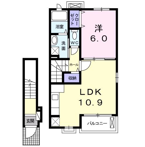 | 間取り詳細 | 洋室 6畳 、 LDK 10.9畳 |