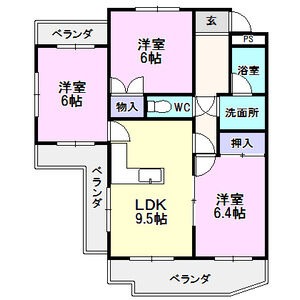 | 間取り詳細 | LDK 9.5畳 、 洋室 6畳 、 洋室 6畳 、 洋室 6.4畳 |