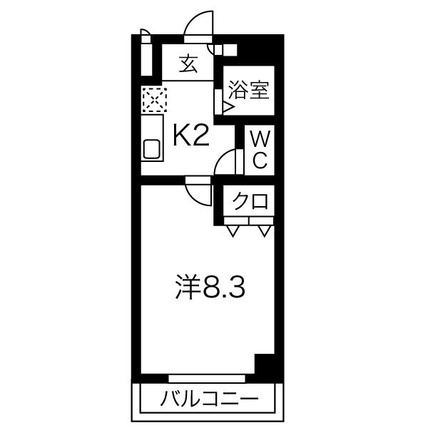 | 間取り詳細 | K 2畳 、 洋室 8.3畳 |