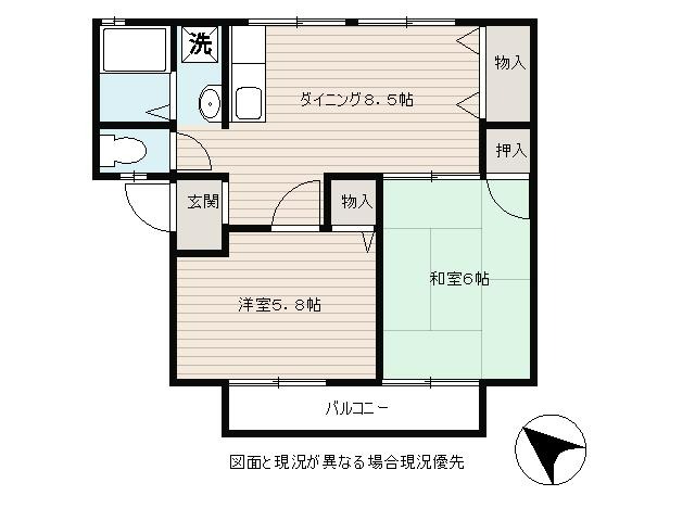 | 間取り詳細 | DK 8.5畳 、 和室 6畳 、 洋室 5.8畳 |