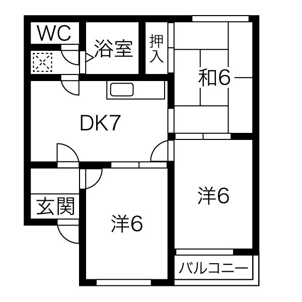 | 間取り詳細 | DK 7畳 、 洋室 6畳 、 洋室 6畳 、 和室 6畳 |