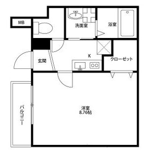 | 間取り詳細 | K 2畳 、 洋室 8.7畳 |