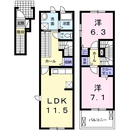 | 間取り詳細 | 洋室 6.3畳 、 洋室 7.1畳 、 LDK 11.5畳 |