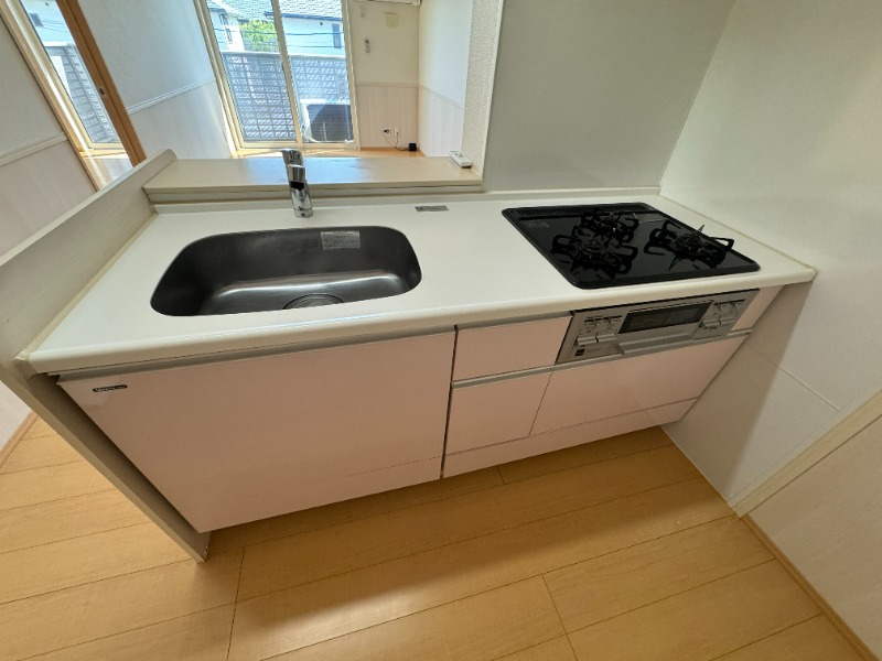 | 設備 | ガス(プロパン)、インターホン(TVモニター付き)、防犯カメラ、カードキー、火災報知機、宅配ボックス、駐輪場、角部屋、フローリング、二重ガラス、照明器具、全室照明付、ベランダ・バルコニー、クローゼット、ウォークインクローゼット、下駄箱、バス・トイレ別(別室)、シャワー、追い焚き、脱衣所、給湯、浴室1坪以上、ウォシュレット、ウォームレット、洗面台、洗面所独立、シャンプードレッサー、洗濯機置き場(室内)、コンロ設置済、システムキッチン、カウンターキッチン、対面キッチン、エアコン、エアコン台数(1)、CATV、インターネット使用料無料 | ||