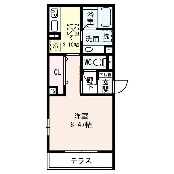 | 間取り詳細 | K 3.1畳 、 洋室 8.47畳 |