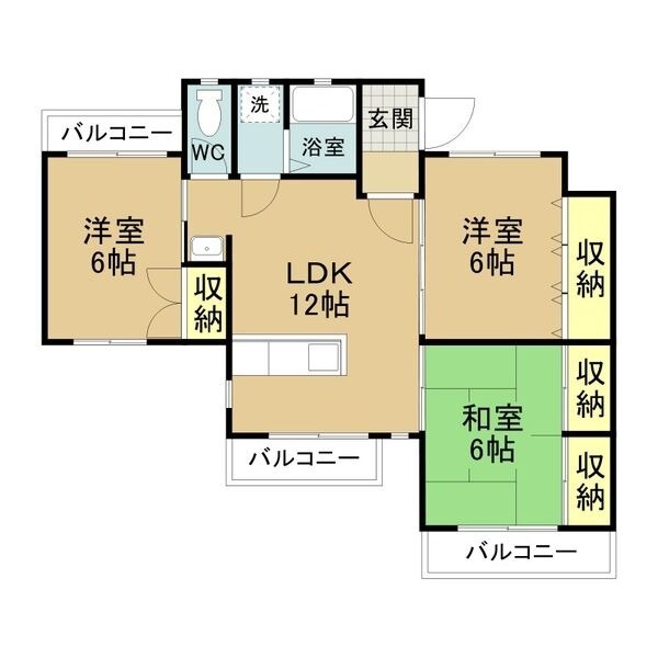 | 間取り詳細 | LDK 12畳 、 洋室 6畳 、 洋室 6畳 、 和室 6畳 |