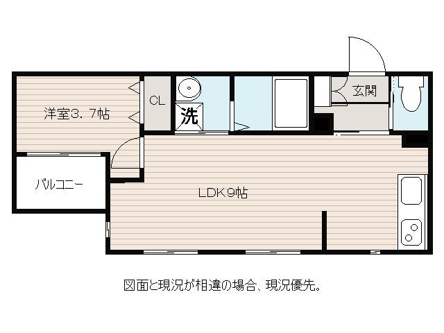 | 間取り詳細 | LDK 9畳 、 洋室 3.7畳 |