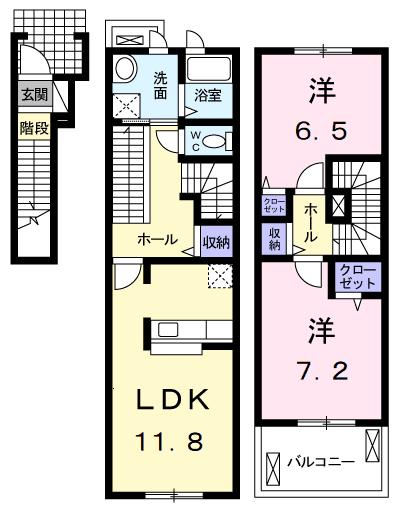 | 間取り詳細 | 洋室 7.2畳 、 洋室 6.5畳 、 LDK 11.8畳 |