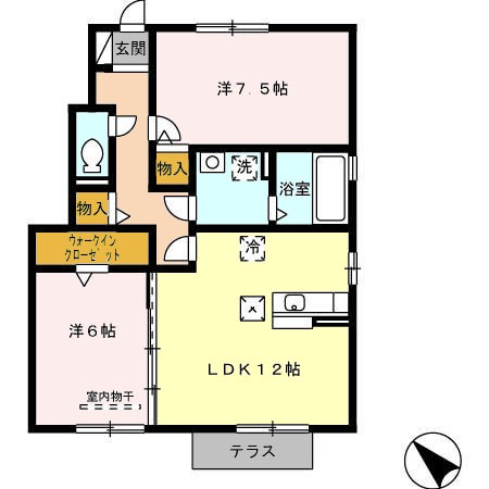 | 間取り詳細 | LDK 12畳 、 洋室 6畳 、 洋室 7.5畳 |
