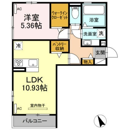 | 間取り詳細 | LDK 10.93畳 、 洋室 5.36畳 |