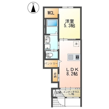 | 間取り詳細 | LDK 8.2畳 、 洋室 5.3畳 |
