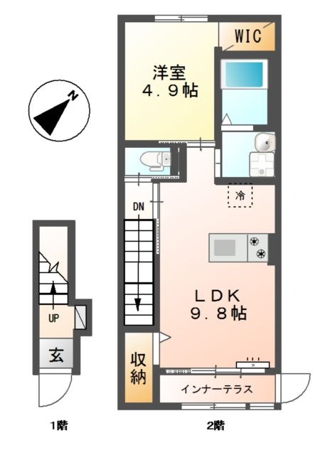 | 間取り詳細 | LDK 9.8畳 、 洋室 4.9畳 |