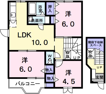 | 間取り詳細 | 洋室 6畳 、 洋室 6畳 、 洋室 4.5畳 、 LDK 10畳 |